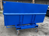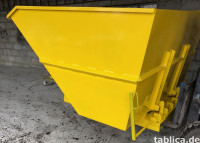 HALLO! Ich habe Selbstentleerungscontainer mit ZERTIFIKAT und 12 MONATEN GARANTIE zum Verkauf, mit den Maßen: *0,5 m³ *1 m³ *1,5 m³ *2 m³ *2,5 m³ *3 m³ Die Behälter bestehen aus ZERTIFIZIERTEN Blechen mit einer Dicke von 3 mm, der Boden ist mit zahlreichen Verstärkungen versehen. Natürlich kann die Materialstärke des Behälters individuell vereinbart werden. Wie auf den obigen Bildern zu sehen ist, sind die Container teilweise gebogen, was automatisch zu höherer Festigkeit und längerer Lebensdauer des Produkts führt. Die Behälter können zum Transport verschiedener Schüttgüter verwendet werden, wie z. B.: *Kies *Sand *Zement *Bauschutt *Schrott *Kohle *Späne *und vieles mehr Aufgrund der Dichtheit des Produkts kann es auch zum Transport von Flüssigkeiten verwendet werden. An der Unterseite des Produkts sind Ösen befestigt, die zur Befestigung des Containers an einem Gabelstapler verwendet werden können – dadurch wird ein Herunterrutschen des Behälters von den Gabeln verhindert. Das Produkt ist zweimal gestrichen, einmal mit Grundfarbe und einmal mit blauer Farbe, die Farbe kann nach Wunsch geändert werden. Möglichkeit zur Montage von: - Rollen - Behälter für Betriebsflüssigkeiten - Wasserhahn - seitliche Einfahrt für Gabeln - Klappe, die beidseitig, einseitig oder vollständig abnehmbar ist - Griff, der das Schieben des Containers erleichtert - Frontmechanismus usw. Der angegebene Preis ist ein Netto-Preis. Der Preis bezieht sich auf einen 2 m³ Container ohne Rollen, Griff, Klappe und andere Extras. Ich stelle Rechnungen aus. Zu jedem Container gehören: - CE-Konformitätserklärung - 12-monatige Garantie sowie - Bedienungsanleitung. Der Transport wird individuell vereinbart. Ich lade Sie zum Kauf ein.